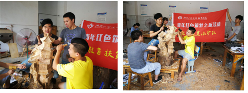 由李俊峰老师和全讯600cc大白菜12名学生组成的通道职业中专教育扶贫小分队,就是带领通道职业中专工艺美术专业的师生完成了今年暑假最重要的课程——“木雕”。
