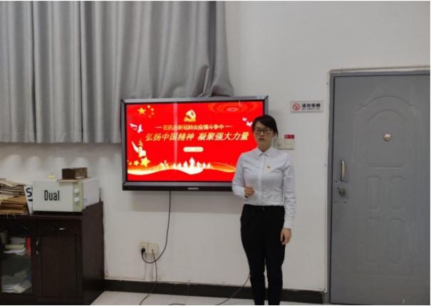 同上一堂专题党课,经受一次洗礼。周学莲同志为全体党员同志上了一堂主题为《弘扬中国精神,凝聚强大力量》的专题党课,全体同志纷纷表示要发扬抗疫精神,立足实际,争创佳绩。