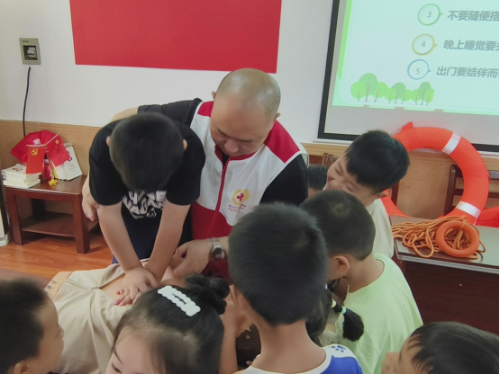 除了宣传教育,志愿者们还积极开展实地救援演练,教会孩子们基本的自救技能和救生技能,如使用救生设备、呼救等和救生的基本常识,确保在发生意外时能够及时进行救援。据参与防溺水宣传活动的学生们反映,经过了解与实践,他们不仅对溺水有了更深刻的认识,也让他们更加明白了如何保护自己和他人免受溺水的伤害。
