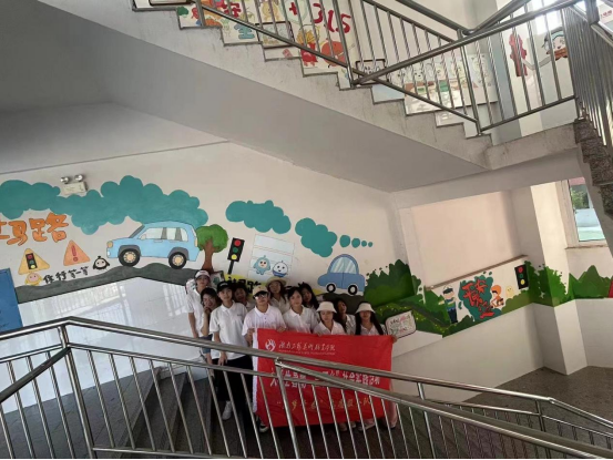 活动的第一站,同学们来到了桃江镇中心小学,将墙绘艺术与小学主题教育相融合,队员们精心设计了“红色传承”、“交通安全”、“食品安全”、“消防安全”四个篇章,在校园的墙壁上精心绘制出一幅幅充满童趣和教育意义的主题壁画。这些墙绘不仅为校园增添了活泼的色彩,更营造了一个健康和富有教育意义的学习环境,让孩子们在潜移默化中传承红色文化,增强安全意识。
