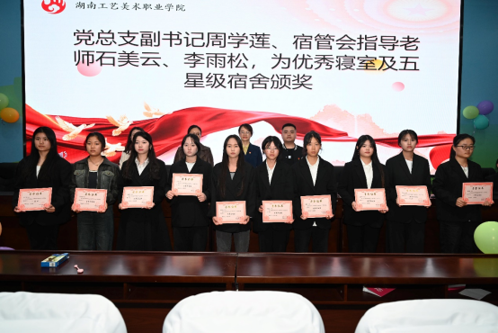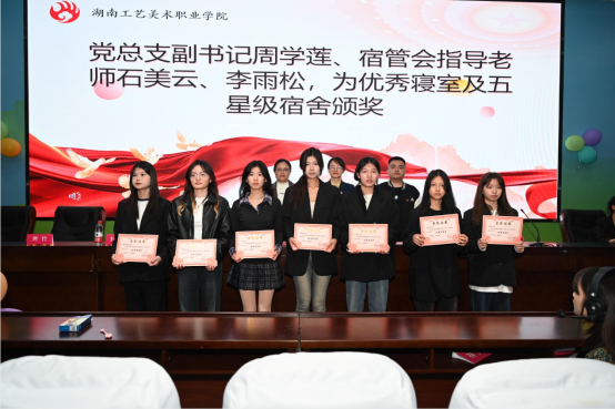 随后,大会进入颁奖环节,首先为优秀寝室、优秀寝室长及五星文明寝室颁发了奖项。在这个过程中,优秀寝室长代表罗丹妮发表了感言,分享了她在管理寝室中的经验与体会,激励同学们共同营造良好的宿舍氛围。