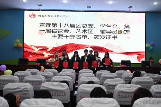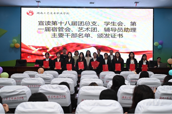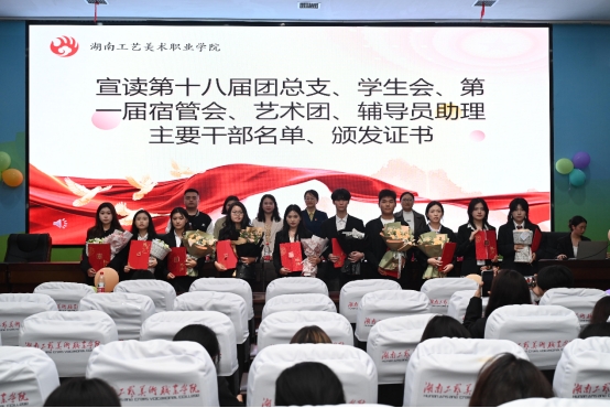 大会还宣读了服装艺术设计学院第十八届团总支、学生会、第一届宿管会、艺术团、辅导员助理主要干部名单,并为各位干部颁发了聘书,感谢他们在过去一年中为院校发展所做出的贡献。