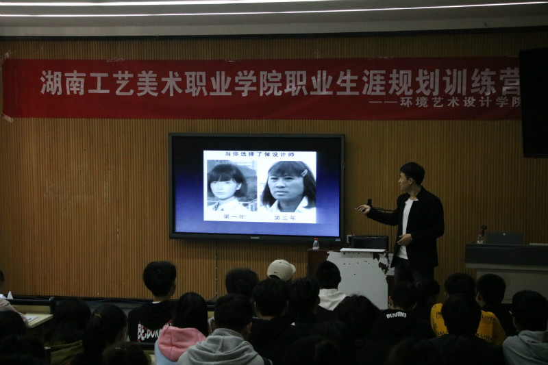 为帮助学生树立职业生涯规划意识,加深对设计、设计师职业的理解,普及设计与手绘知识,提高生涯觉察和职业能力,环艺学院于11月5日12点和晚上6点半在尚美楼开展了两场以“设计师的生存指南”为主题的职业生涯规划训练营系列活动。大一新生200余人参加。主讲人为卓越教育培训机构胡智华、余祥晨,他们从设计师现状说起,为大家阐述设计的魅力,过程的艰辛,告诉大家要掌握技巧,运用好软件,提高效率和效果。特别是手绘作为设计的重要表现手段,对大学生来说成为重要。为让同学们感受到手绘的魅力,余祥晨老师一边进行现场手绘,一边回答同学们关于设计与生活的问题。在场的同学们积极踊跃,现场气氛相当活跃。