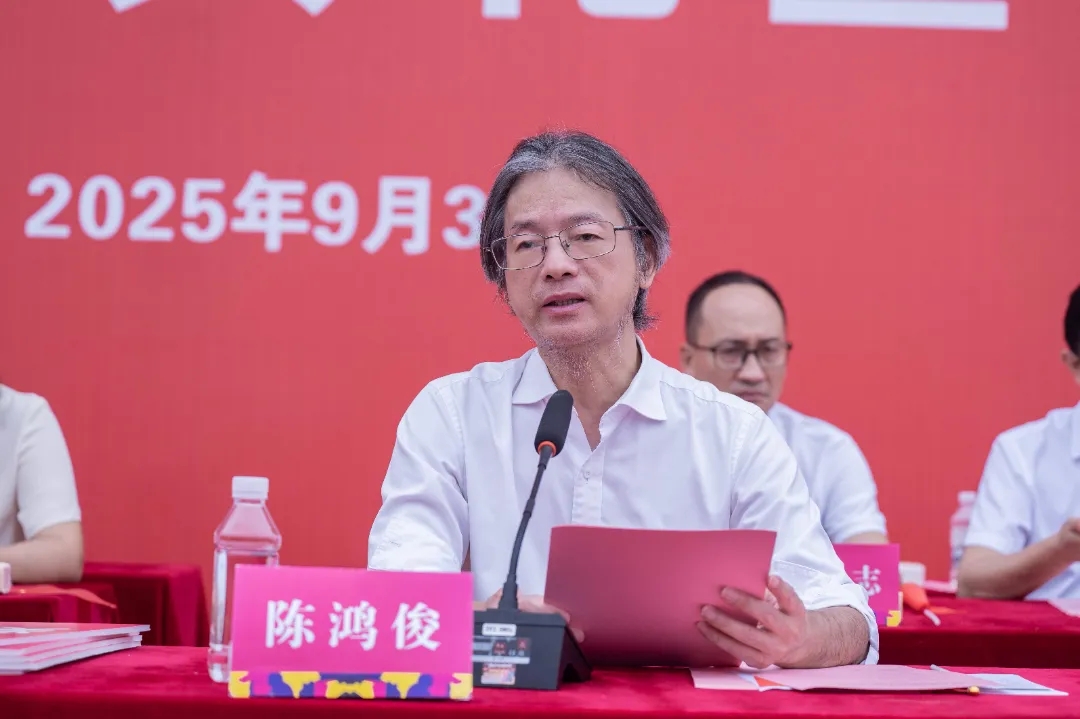 典礼现场,陈鸿俊以《以青春之我铸就民族复兴的工艺美术英才》为题,为2025级新生讲授“开学第一课”。他寄语广大青年学子:一是铭记历史守初心,从抗战精神中汲取奋进力量。刚刚过去的纪念中国人民抗日战争暨世界反法西斯战争胜利80周年大会,展示了国防和军队现代化建设的伟大成就,彰显了中华民族的团结意志和坚定决心。新时代青年的人生发展黄金期与民族复兴关键期历史性叠合在一起,强国建设、民族复兴的接力棒历史性地落在了这一代人身上。同学们要将爱国情怀融入血脉,转化为前行的动力,让红色基因代代相传。二是淬火成钢砺意志,将军训成果转化为成才基石。同学们要将军训中养成的优良作风和顽强意志,转化为刻苦学习、追求卓越的强大动力,尽快完成从被动接受到主动求索的转变,努力提升学习能力、抗压能力、创新能力和组织能力,为成长成才奠定坚实基础。三是匠心筑梦担使命,以专业技能报效伟大时代。同学们要弘扬“执着专注、精益求精、一丝不苟、追求卓越”的工匠精神,立足专业特色,将艺术创作与时代需求紧密结合。要扎根传统文化,守正创新;服务人民生活,学以致用;勇担文化使命,传承薪火。四是知行合一启新程,用实干精神书写青春华章。同学们要珍惜大学的宝贵学习时光,将个人理想融入国家发展大局,主动融入校园生活,积极参与实践活动,在知行合一中提升综合素质。