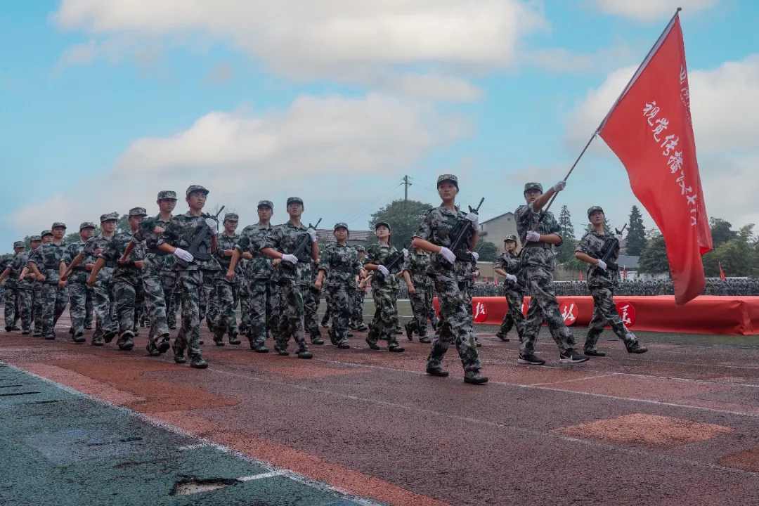 开学典礼在庄严的国歌声中拉开帷幕。伴随着激昂高亢的分列式进行曲,受阅学生方队依次通过主席台,口号铿锵、步伐稳健。擒敌拳、匕首操表演动作刚健、气势昂扬,展现了美院学子的军训成果,赢得了现场师生的阵阵掌声。