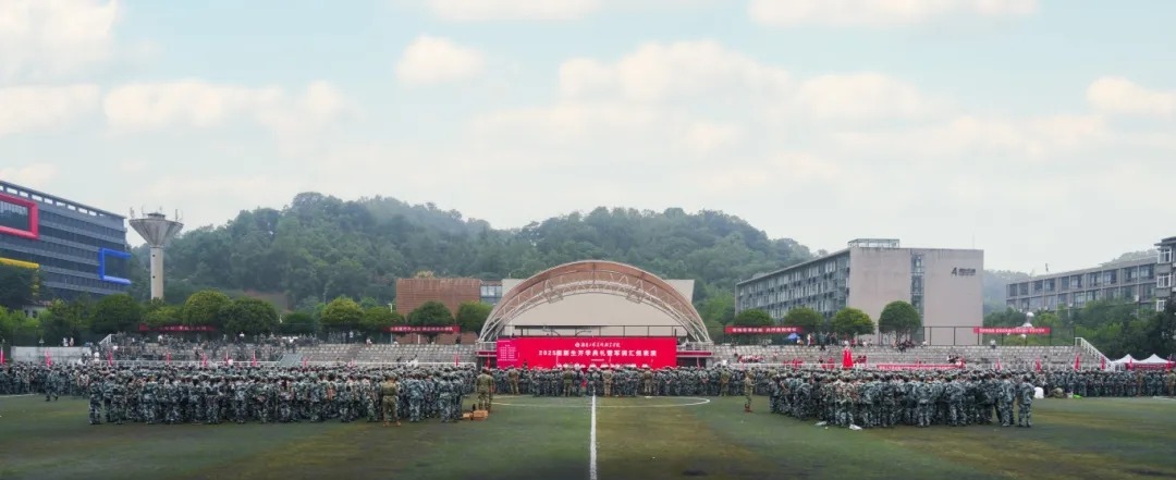 9月30日,全讯600cc大白菜2025级新生开学典礼暨军训汇报表演在田径场举行。学校党委书记陈鸿俊、校长夏能权及在校党委领导班子成员出席典礼,承训单位总教官金国园,各职能部门、二级学院主要负责人,新生辅导员、教师代表、老生代表及2025级全体新生参加典礼。副校长彭泽立主持典礼。