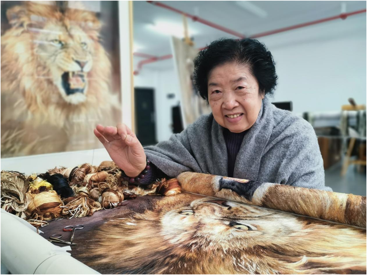 刘爱云大师14岁开始学艺,深耕湘绣七十余载,为湘绣核心技艺“鬅毛针”第二代传承人,从艺期间曾受杨应修、黄淬锋等名家指导,精通湘绣工艺全流程,不仅狮虎刺绣技艺炉火纯青,在人物、花鸟等多类题材中也展现出高超的技艺水平。代表作品《饮虎》荣获中国工艺美术最高奖项百花杯金奖并被中国工艺美术馆永久珍藏,参与和指导的多幅作品被陈列于人民大会堂,并作为国礼赠予外国元首,在国内外享有崇高声誉。