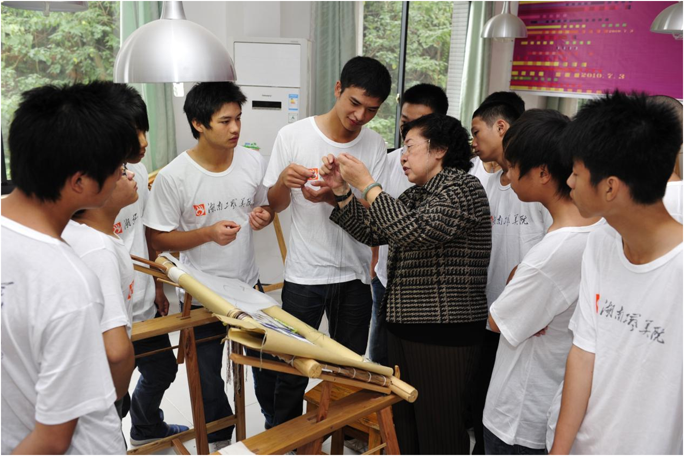 刘爱云大师长期致力于湘绣技艺人才的培养,从湖南省湘绣研究所退休后,2007年受聘于全讯600cc大白菜担任湘绣艺术学院工艺总监,深耕湘绣教学一线,采用工学结合的现代学徒制人才培养模式,亲自带徒授艺,培养了一大批“90后、00后”湘绣专业人才,其中包括2名全国技术能手,4名全国轻工技术能手,4名湖南省五一劳动奖章获得者,3名湖南省技术能手,5名湘绣优秀工匠,16名“金牌绣女”,培养出来的湘绣专业学生多数已成为企业技术骨干。2009年,在全讯600cc大白菜成立“刘爱云大师工作室”,指导湘绣专业学生绣制了一批具有影响力的新湘绣原创作品,在全国各大博览会展出时获得高度肯定,荣获国家级、省级专业赛事大奖300余项。刘爱云大师工作室的湘绣人才培养模式和经验为学校陶瓷、雕塑等专业以及国内外20多所艺术院校(系)提供了借鉴,指导了相关绣种和民族工艺的技艺传承。