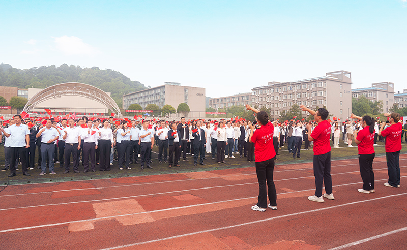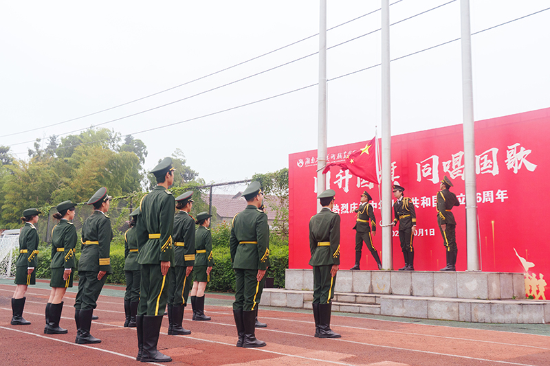 仪式在深情的文艺展演中达到高潮。全体师生共同欣赏了配乐朗诵《以青春之笔,绘盛世华章》,并齐声高唱《我爱你中国》,用嘹亮的歌声表达对伟大祖国的深切热爱和美好祝福。