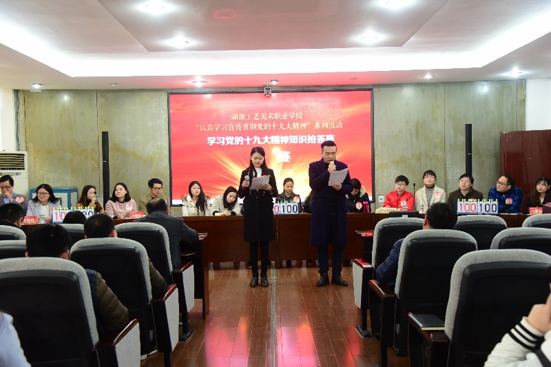 12月21日下午,全讯600cc大白菜“认真学习宣传贯彻党的十九大精神”系列活动之“党的十九大精神知识抢答赛”决赛在致美楼206会议室举行。经各总支和直属教工支部初赛严格选拔,学校统一组织笔试复赛,装饰艺术设计系党总支、服装艺术设计系党总支、环境艺术设计系党总支、直属教工三支部、直属教工四支部、直属教工五支部,六支代表队突出重围,进入本次决赛。