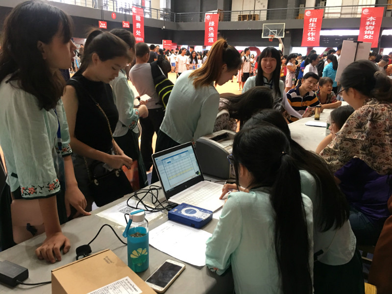 迎新现场,设立了刺绣表演处、新生报到处、专业咨询处、家长休息处和党员服务台,并全天开放湘绣展厅,让前来报到的新生和家长更好地了解所学专业。刺绣表演处的老师和同学飞针走线,生动娴熟地展演了一场针尖上的芭蕾,让各地学子和家长叹为观止!报到处,学长学姐们统一着装,成为了迎新现场一道亮丽的风景,他们带着学弟学妹办理各种报道手续,提行李、领新生礼品,情谊在这一刻尽情展露。专业咨询处的老师们为新生和家长解答了疑惑,使他们更加坚信自己的选择。